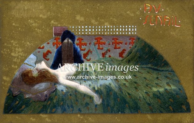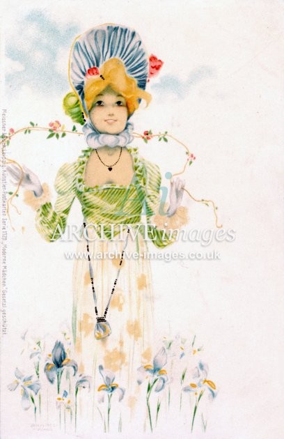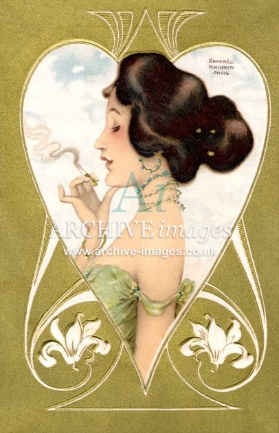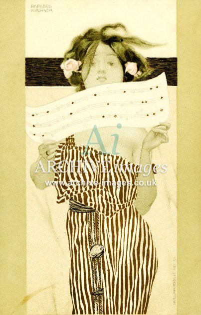Artistic images by the artist Raphael Kirchner from the Art Nouveau period of the late 19th and early 20th centuries, from original old postcards