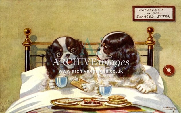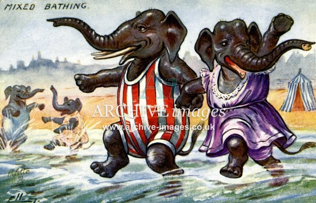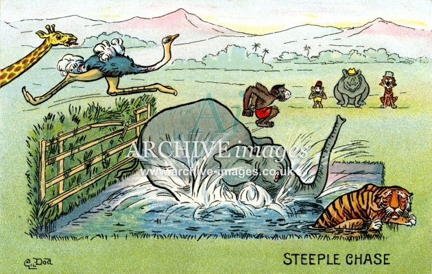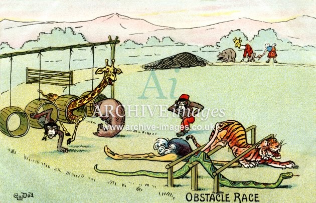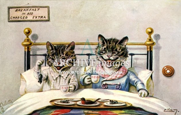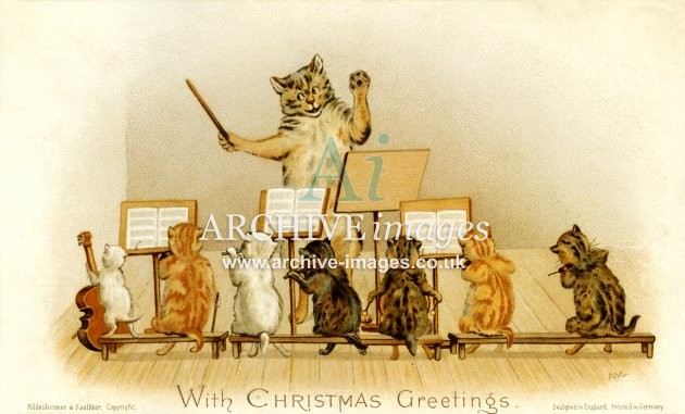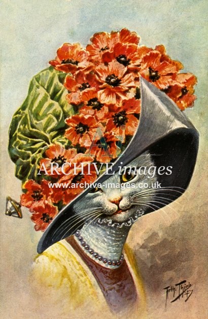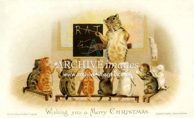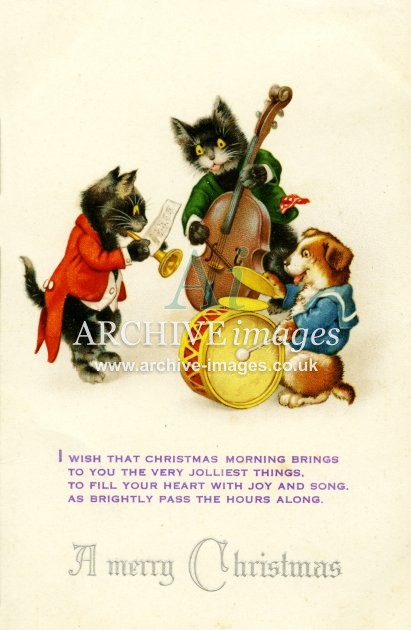 Archive artistic images of Anthropomorphic Animals. Beginning in the Victorian era, anthropomorphic art – the art of animals in human form and situations – became very popular and remains so today. Here we see all manner of animals depicted in human dress and carrying out human tasks. Cats and then dogs were the most popular but many other animal species, including pigs, elephants, monkeys, lions, chickens, rabbits, squirrels, birds and insects have all found themselves caricatured in human form and some stage. The most famous of the artists in this genre was undoubtedly Louis Wain but there were many other well known names during the first half of the 20th century, including Arthur Thielé, Maurice Boulanger, GE Studdy, Harry Rountree and WR Ellam.