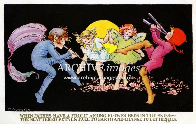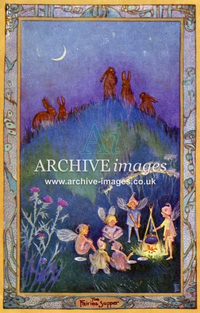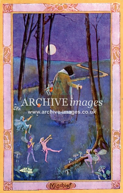 Archive artistic images of fairies, pixies, elves, woodland scenes, animals and games, many by well known postcard and book illustrators of the early 20th century, such as Millicent Sowerby, Ida Rentoul Outhwaite, Lilian Govey, LS Hine and others. Delightful scenes from childhood and a more innocent age.