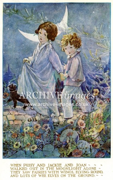 Archive artistic images of fairies, pixies, elves, woodland scenes, animals and games, many by well known postcard and book illustrators of the early 20th century, such as Millicent Sowerby, Ida Rentoul Outhwaite, Lilian Govey, LS Hine and others. Delightful scenes from childhood and a more innocent age.