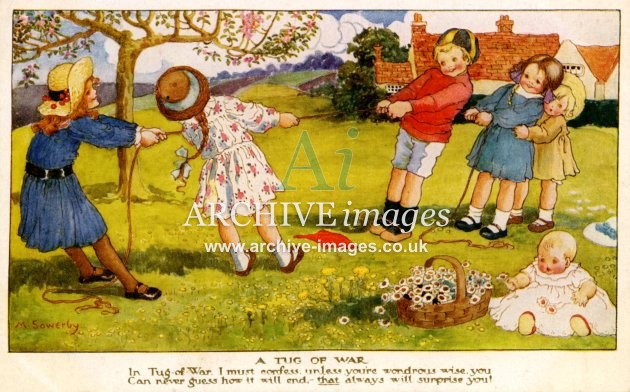 Archive artistic images of Childhood Days shows children at home and outside, at school and on holiday, playing games and having fun in an age of innocence now largely lost. Many of the pictures are by well known artists of the first half of the 19th century, such as Millicent Sowerby, Margaret Tarrant, Agnes Richardson, Phyllis Cooper and Susan Beatrice Pearce but there is also some delightful art by less well known or anonymous names.