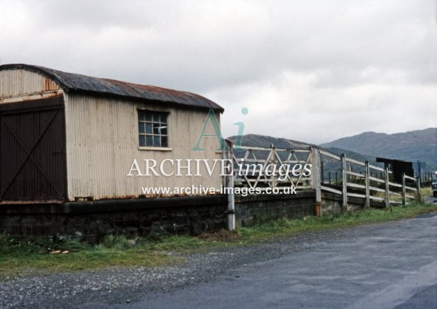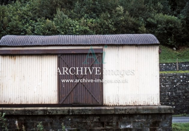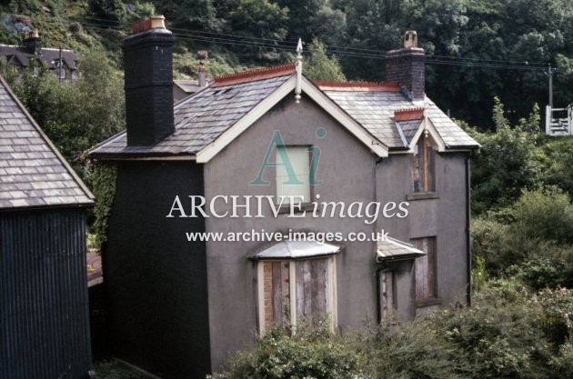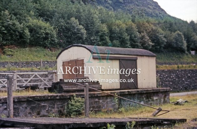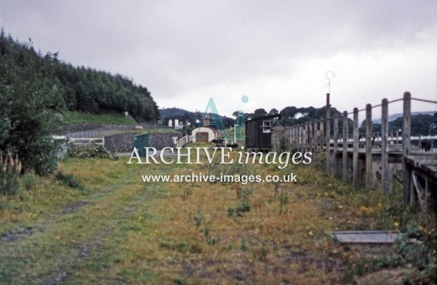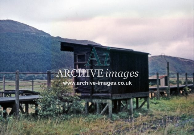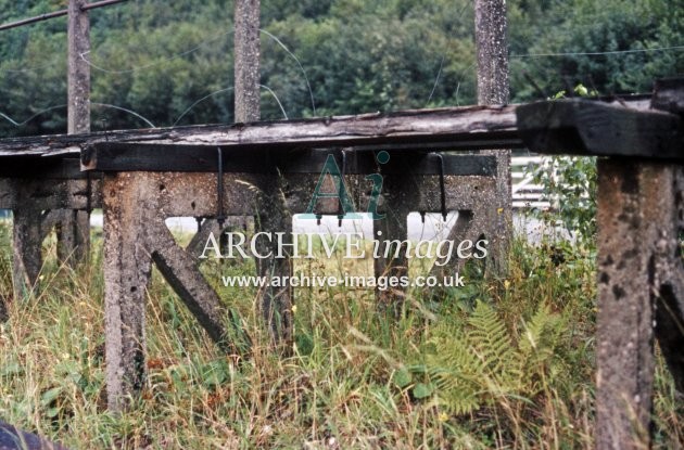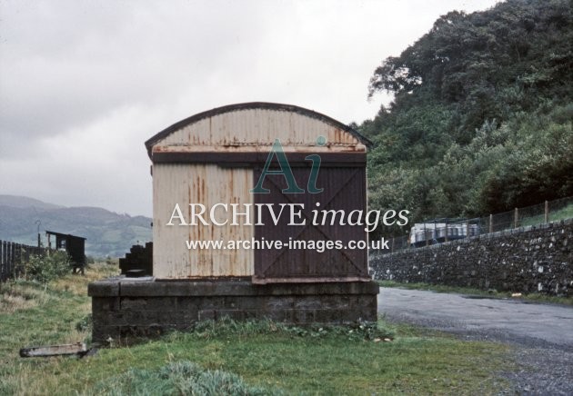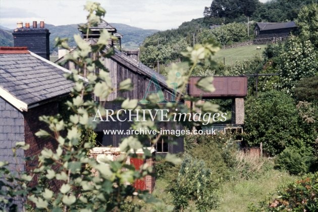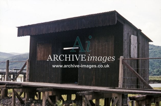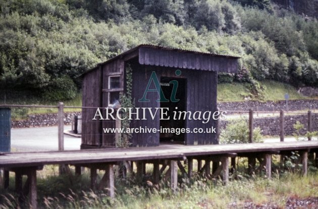 This is part of a survey of Penmaenpool station comprising 56 shots all taken c1970, after the track had been lifted but before any of the major structures had been demolished. Today, the signal box remains as an RSPB observation and information post, whilst the station building has been rendered, painted white and is now a private dwelling. All other structures were demolished circa 1976, whilst the original bracket signal seen in some of these photos adjacent to the George Hotel has been replaced by a more modern tubular post signal. This survey, including many detail shots, would be most useful for anyone wishing to make a model of this station. The GWR line from Ruabon and Bala Junction made an end on junction with the Cambrian Railways Dolgelley Branch at Dolgelley but the Cambrian sited their engine shed here at Penmaenpool.