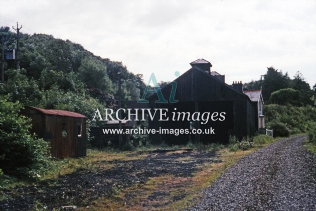 This is part of a survey of Penmaenpool station comprising 56 shots all taken c1970, after the track had been lifted but before any of the major structures had been demolished. Today, the signal box remains as an RSPB observation and information post, whilst the station building has been rendered, painted white and is now a private dwelling. All other structures were demolished circa 1976, whilst the original bracket signal seen in some of these photos adjacent to the George Hotel has been replaced by a more modern tubular post signal. This survey, including many detail shots, would be most useful for anyone wishing to make a model of this station. The GWR line from Ruabon and Bala Junction made an end on junction with the Cambrian Railways Dolgelley Branch at Dolgelley but the Cambrian sited their engine shed here at Penmaenpool.