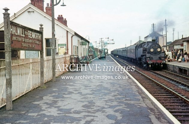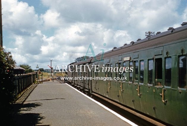 Historic colour images, mostly from 35mm colour transparencies, of railway stations, signal boxes, goods yards, engine sheds, tunnels, bridges and viaducts in the County of Devon, in the British Railways period from the late 1950s to the mid 1970s.