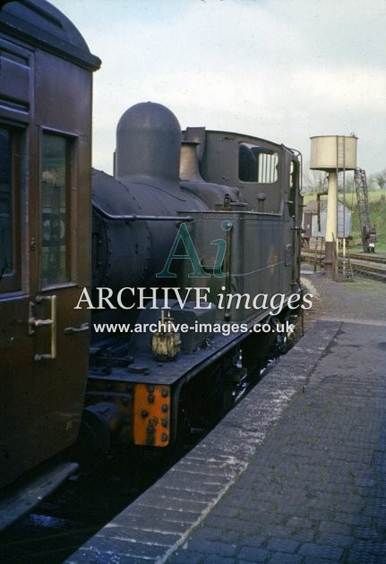 Pannier tank No. 6078 departs Tiverton with an Exe Valley branch train in July 1961