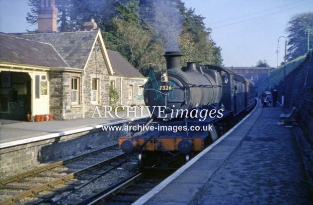 Ex-GWR Mogul No. 7326 at Filleigh with a train for Barnstaple circa 1963