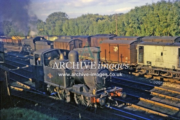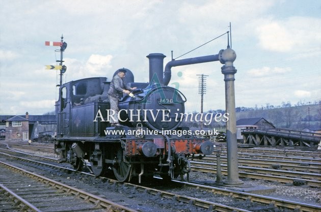 14xx Class 0-4-2T No. 1420 taking water at Leominster South End in April 1964