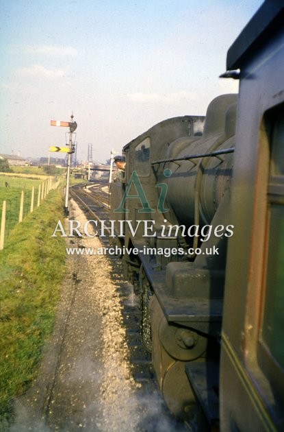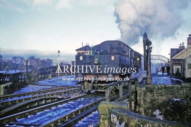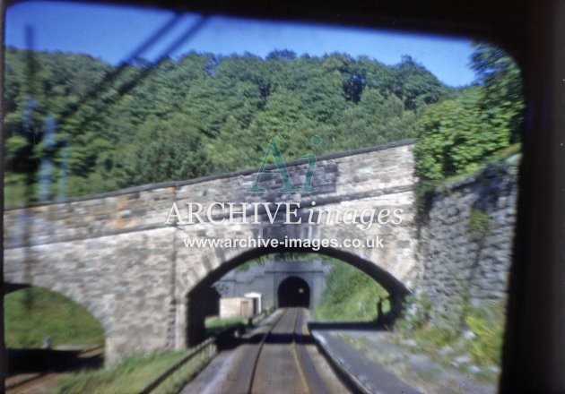 The south portal of Dinmore Tunnel and Dinmore station higher level platform from the rear of a DMU circa 1964