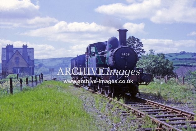 No. 1458 alongside the disused platform at Titley Junction station on 17th May 1964