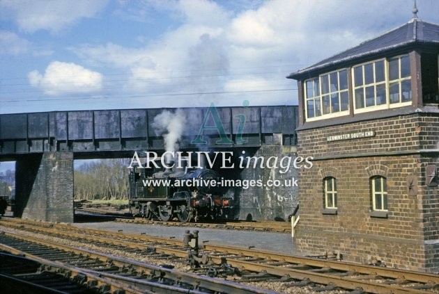 No. 1420 shunting at Leominster in April 1964, with South End signal box in the foreground
