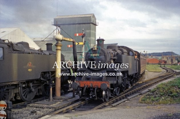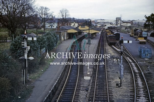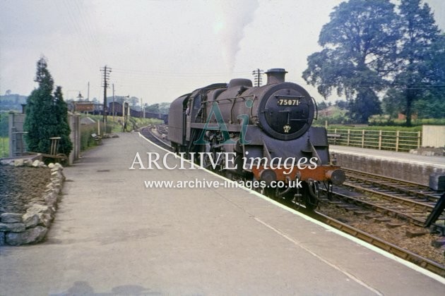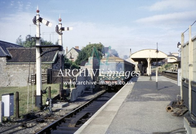 Historic colour images, mostly from 35mm colour transparencies, of railway stations, signal boxes, goods yards, engine sheds, tunnels, bridges and viaducts in the County of Somerset, in the British Railways period from the late 1950s to the mid 1970s.