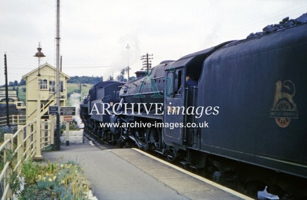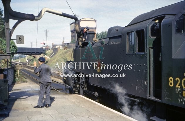 The 3.28 from Witham at Yatton on 4th August 1962, with No. 82039 replenishing its tanks after the long cross-country haul