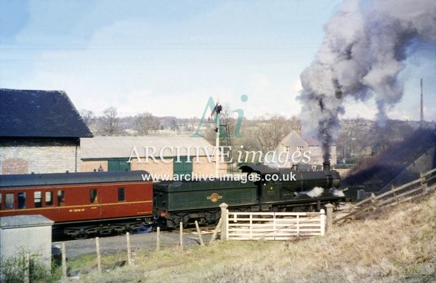 No. 3210 works hard as it hauls the 2,20 highbridge-Templecombe train away from West Pennard station on 31st March 1962