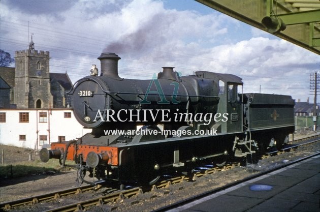 No. 3210 rests between duties at Templecombe on 31st March 1962. Note the hosepipe, indicating the fireman is cleaning the footplate.