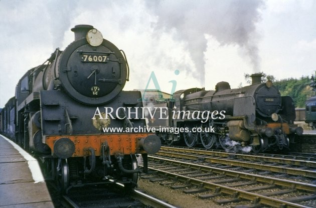 BR Standard No. 76007 and SR U Class Mogul No. 31632 side by side at Yeovil Junction in June 1961