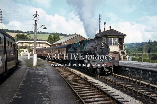 No 7304 at Dulverton c1962, Exe Valley Branch train in bay on left.