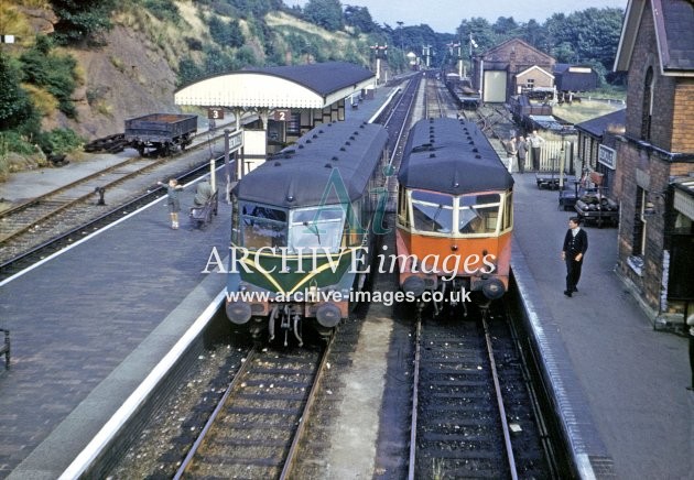 Severn Valley line and Tenbury Branch railcars crossing at Bewdley circa 1961