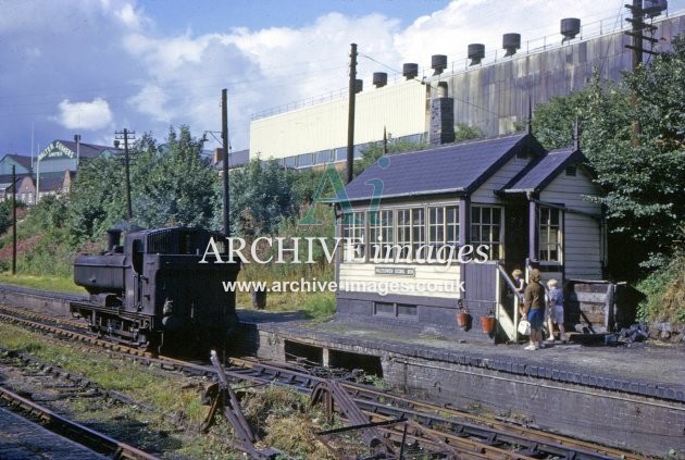 An unidentified pannier tank beside Halesowen Signal Box in August 1966