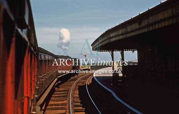 A train for Ryde Pier Head departs Ryde Esplanade station in May 1957
