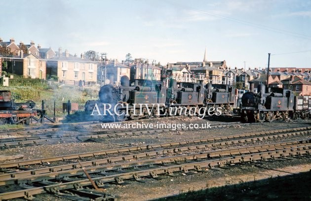 Historic colour images, mostly from 35mm colour transparencies, of the railways on the Isle of Wight, including railway stations, signal boxes, goods yards, engine sheds, tunnels, bridges and viaducts in the British Railways period from the late 1950s to the mid 1970s.