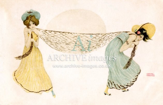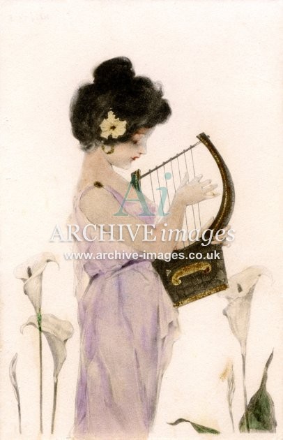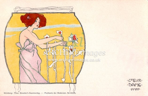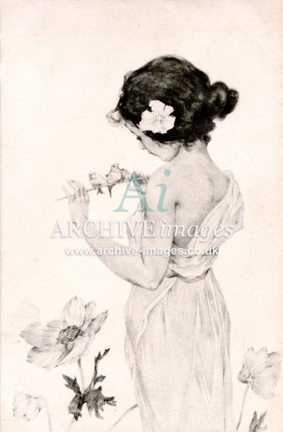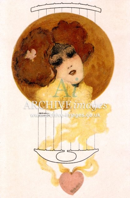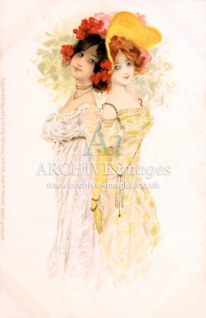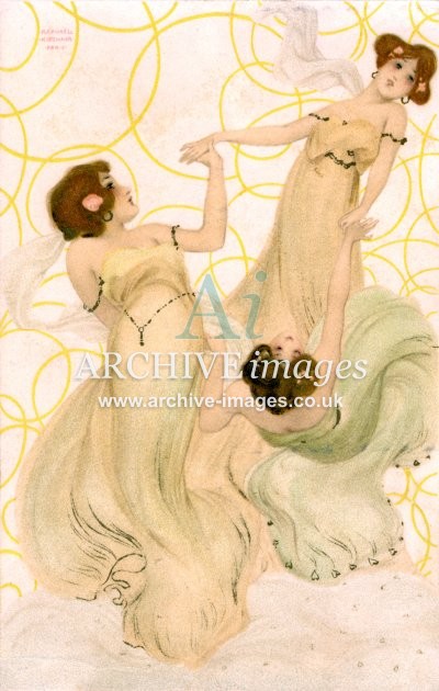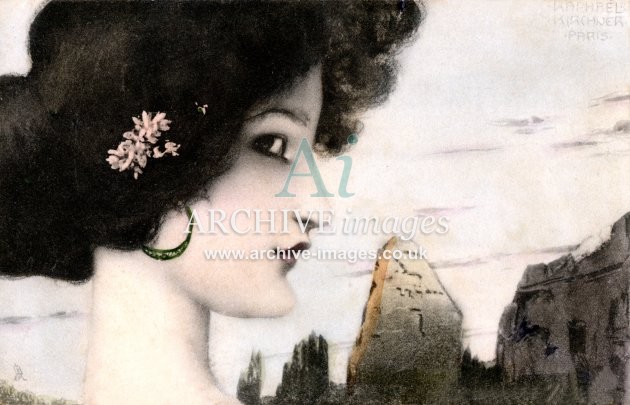 Artistic images by the artist Raphael Kirchner from the Art Nouveau period of the late 19th and early 20th centuries, from original old postcards