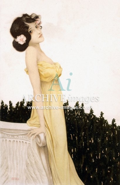 Artistic images by the artist Raphael Kirchner from the Art Nouveau period of the late 19th and early 20th centuries, from original old postcards