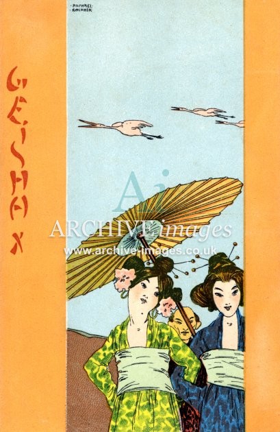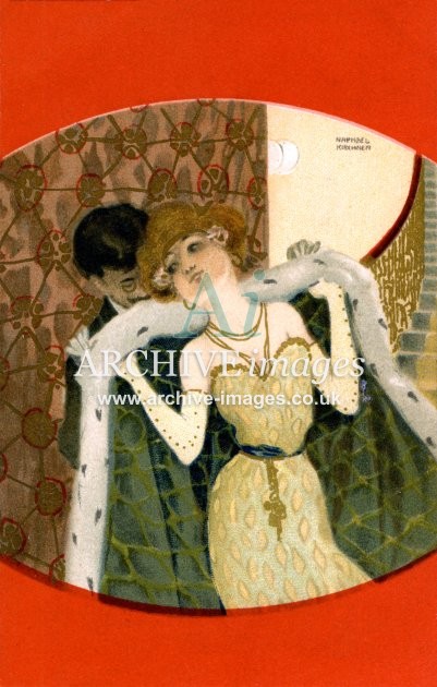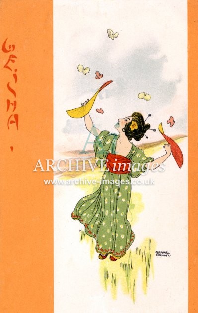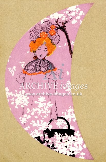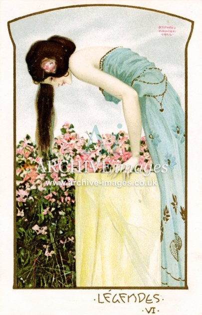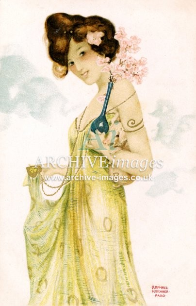 Artistic images by the artist Raphael Kirchner from the Art Nouveau period of the late 19th and early 20th centuries, from original old postcards