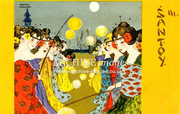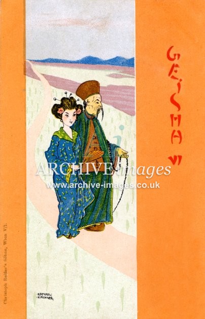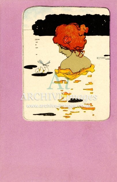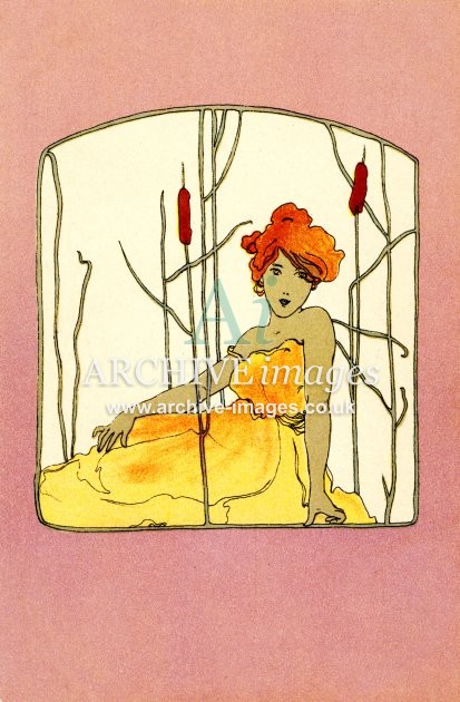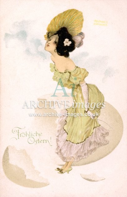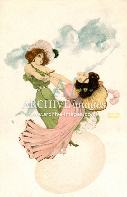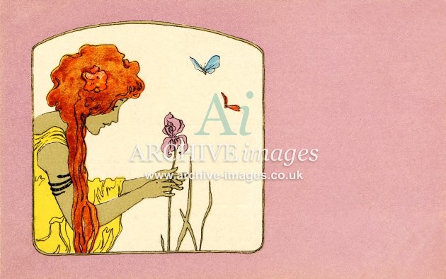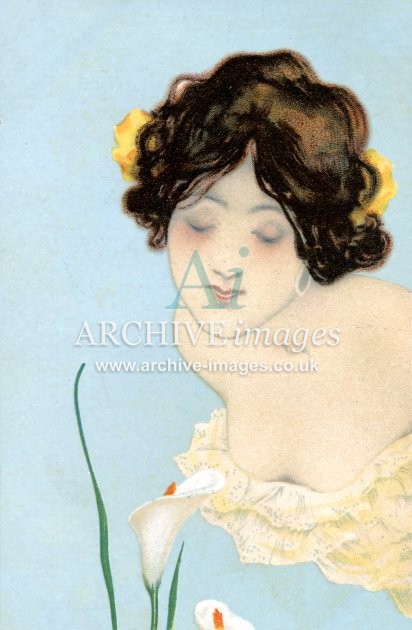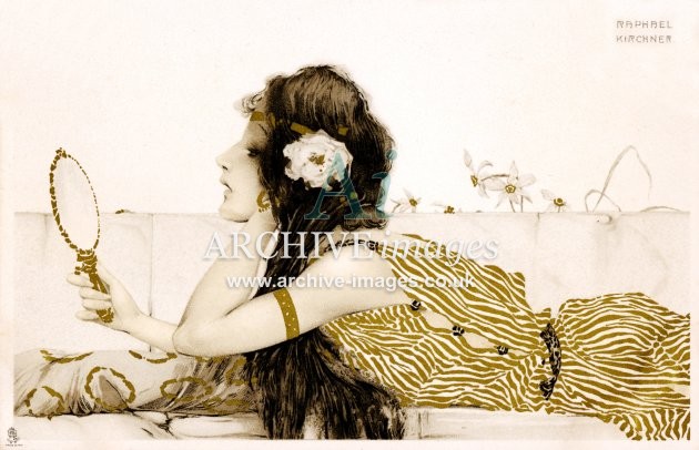 Artistic images by the artist Raphael Kirchner from the Art Nouveau period of the late 19th and early 20th centuries, from original old postcards