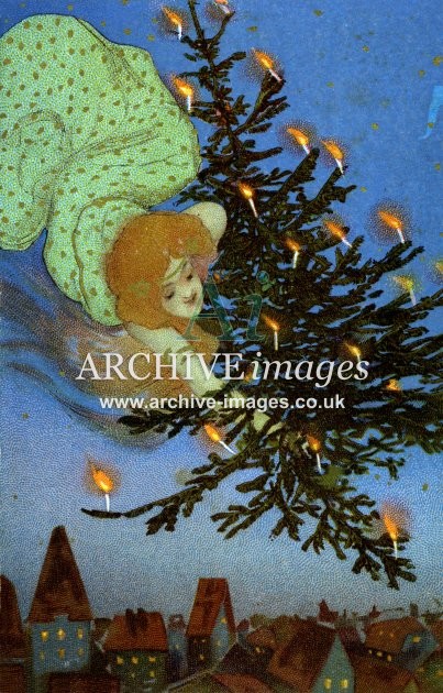 Raphael Kirchner, Christmas Tree Girl In Night Sky A FG