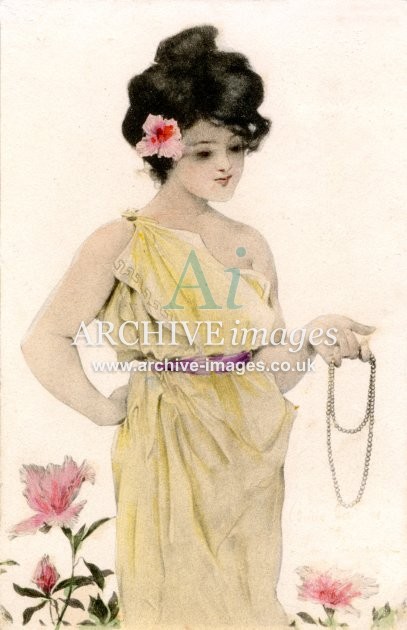 Raphael Kirchner, Classical Girl Holding Necklace FG