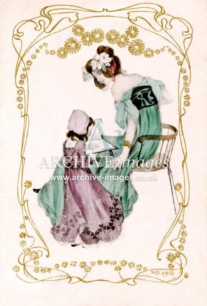 Artistic images by the artist Raphael Kirchner from the Art Nouveau period of the late 19th and early 20th centuries, from original old postcards