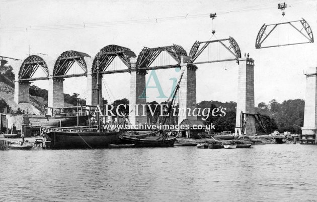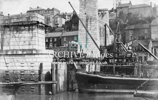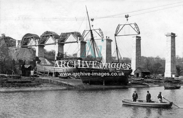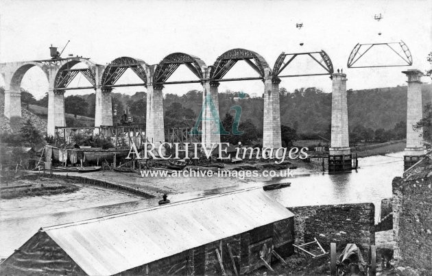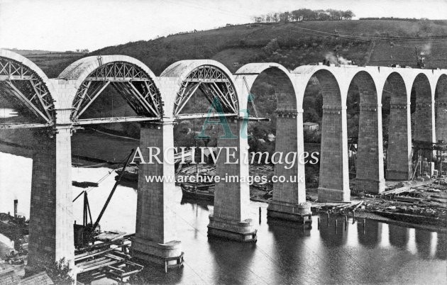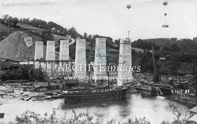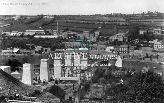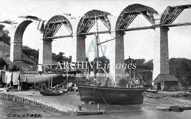 Archive Images of Calstock including construction of the PD&SWJR viaduct and railway, and of the River Tamar, sailing Ships and Paddle Steamers