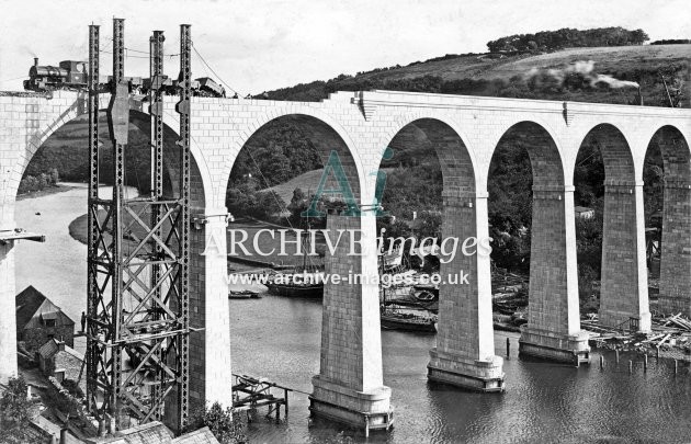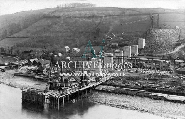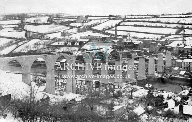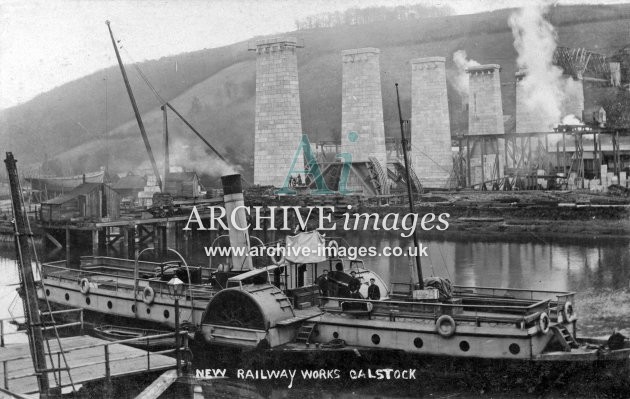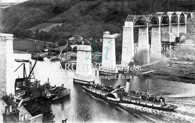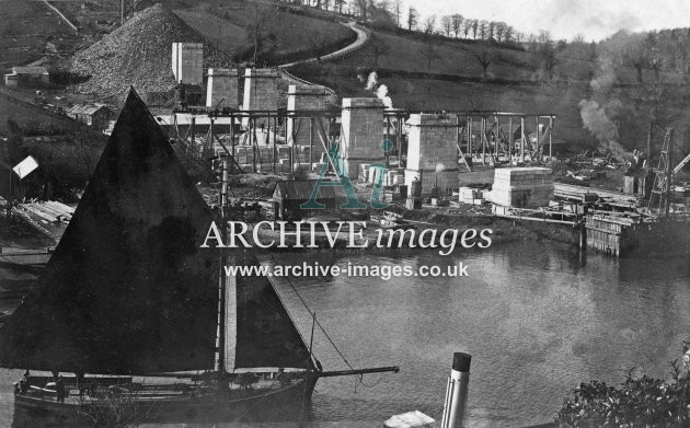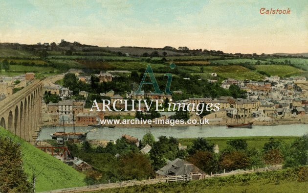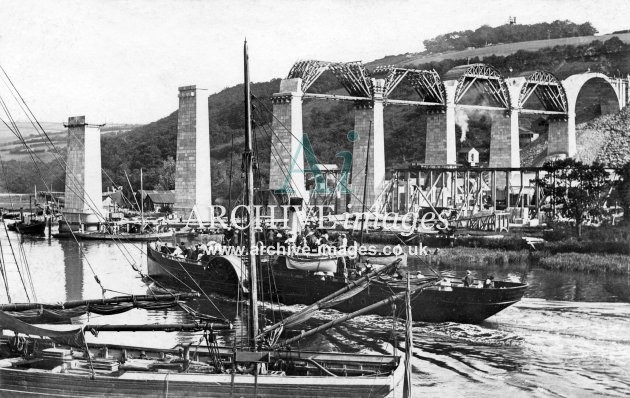 Archive Images of Calstock including construction of the PD&SWJR viaduct and railway, and of the River Tamar, sailing Ships and Paddle Steamers