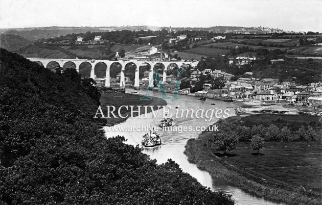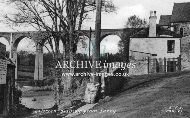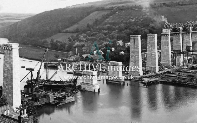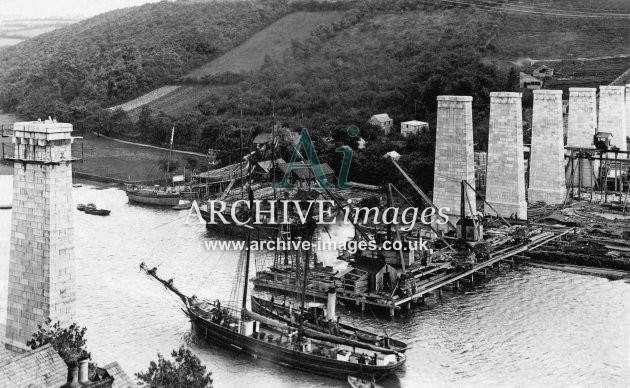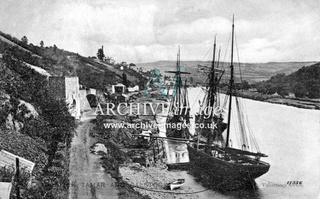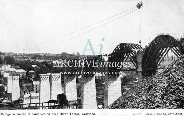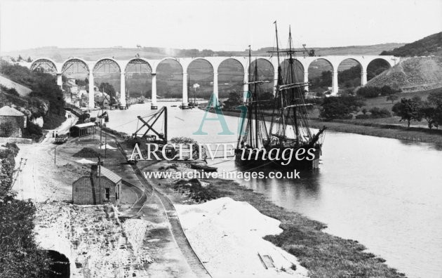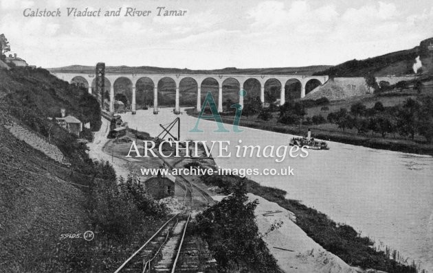 Archive Images of Calstock including construction of the PD&SWJR viaduct and railway, and of the River Tamar, sailing Ships and Paddle Steamers