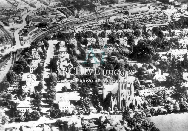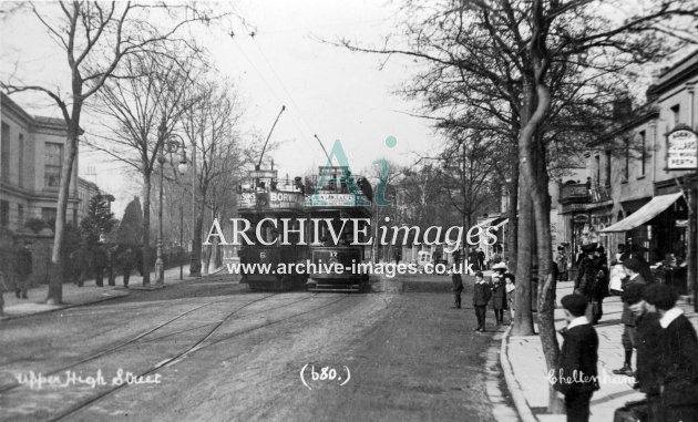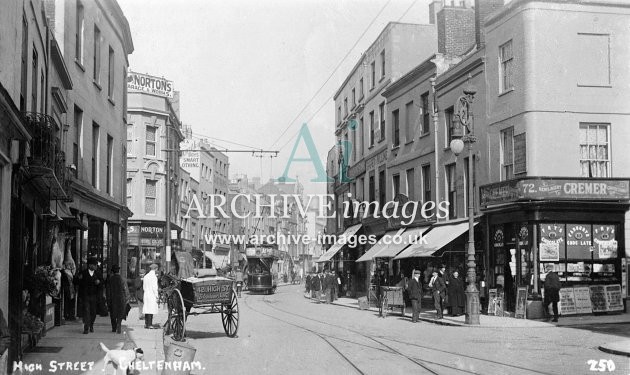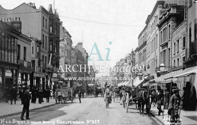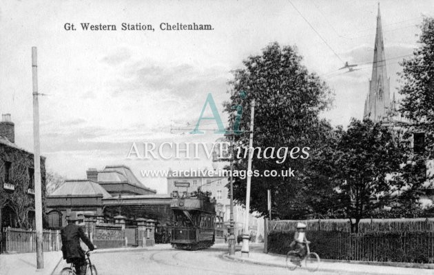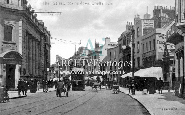 Historic images of the Gloucestershire Spa town of Cheltenham, including the electric tramway and trams, the railway stations, transport, the local industries, schools, post office, pubs & inns, shops and street scenes