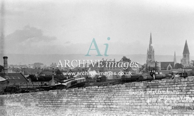Historic images of the Gloucestershire Spa town of Cheltenham, including the electric tramway and trams, the railway stations, transport, the local industries, schools, post office, pubs & inns, shops and street scenes