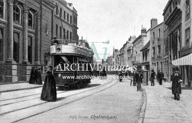 Cheltenham High St & Tram No. 2 c1905