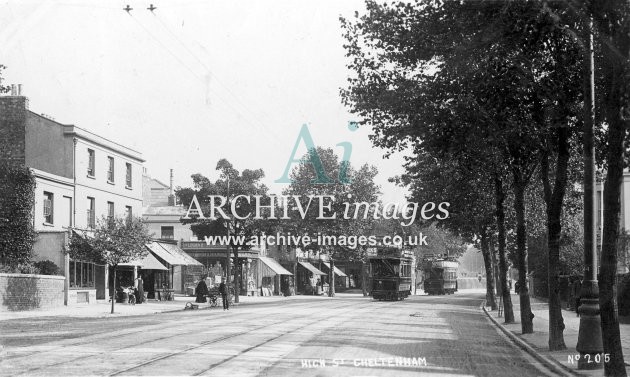 Cheltenham, Upper High St & Trams c1908