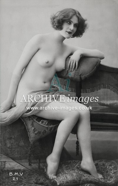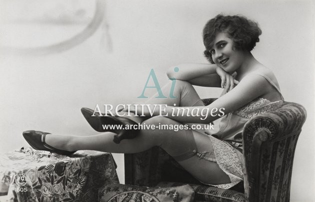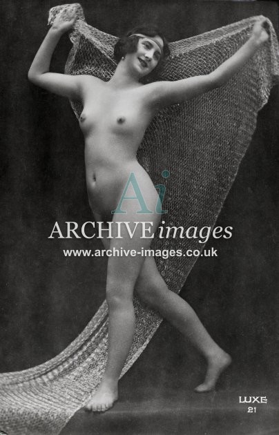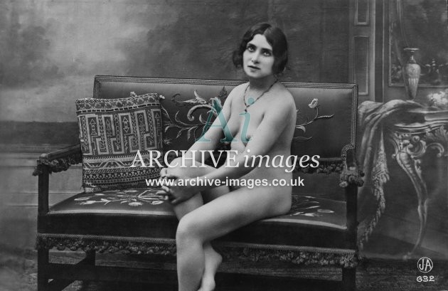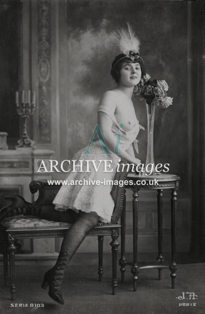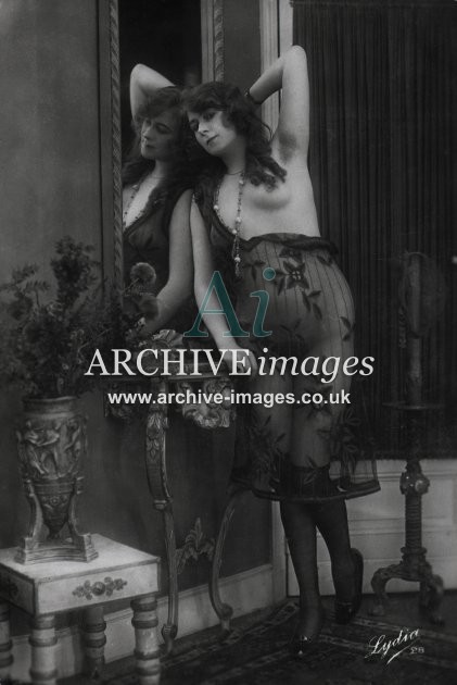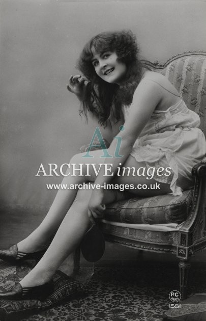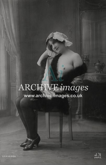 Historic photographic images of mainly French origin of nude and semi nude girls in various states of undress or deshabillé as the French termed it. From the Edwardian period up to the late 1920s, these glamour studies depict the lingerie of the period in both serious and amusing poses, in an ear when stockings and suspenders reigned supreme. Mostly featuring ladies on their own, although a few semi erotic photographs of couples and girls together were also published. These were all published as postcards, although we've never ever seen one that was actually sent!