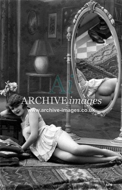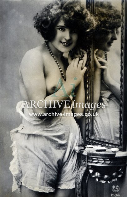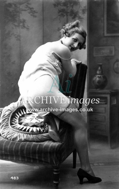 Historic photographic images of mainly French origin of nude and semi nude girls in various states of undress or deshabillé as the French termed it. From the Edwardian period up to the late 1920s, these glamour studies depict the lingerie of the period in both serious and amusing poses, in an ear when stockings and suspenders reigned supreme. Mostly featuring ladies on their own, although a few semi erotic photographs of couples and girls together were also published. These were all published as postcards, although we've never ever seen one that was actually sent!