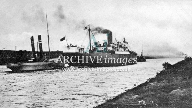 Manchester Ship Canal, SS Manchester Merchant & Tugs in the Ship Canal c1905