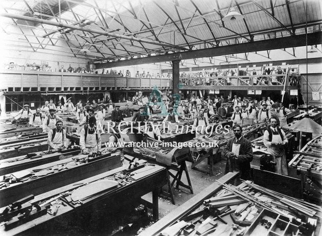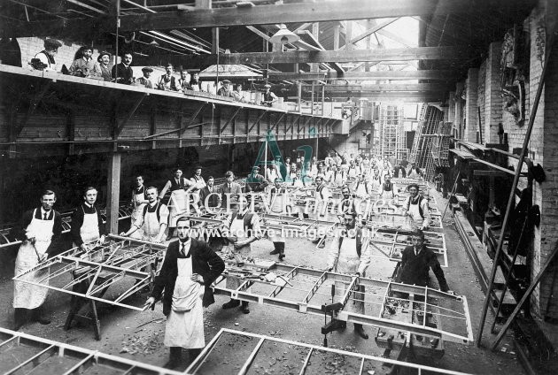Historic images of Gloucestershire factories and industries, showing workers engaged on all manner of trades, making aircraft, railway rolling stock and a host of other products.