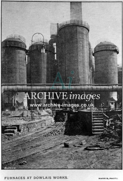 Historic images of British metal works, including iron and steel making, copper works and tin plate works, showing blast furnaces, charging, coke ovens, Bessemer furnaces, metal workers and railway sidings.