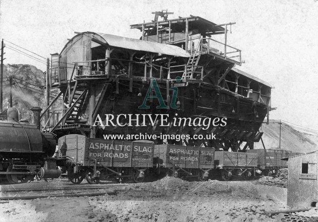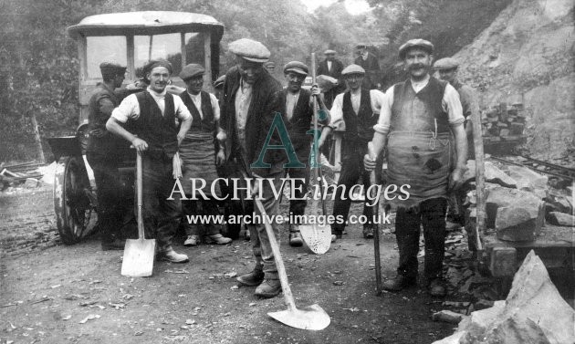 Historic images of the quarrying industry, including stone, granite, limestone, china clay, roadstone, asphalt and slate, showing quarry scenes, stone crushers, stone loaders, railway connections, privately owned railway wagons, quarrymen, slate cutters, stone masons, inclines, tramroads, derricks and stone works
