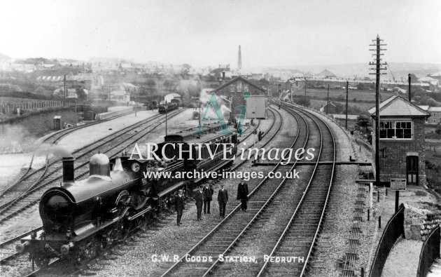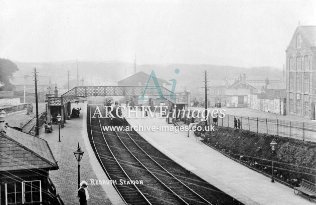 Historic images of Redruth, Cornwall, including the railway, streets, transport, shops and local industries
