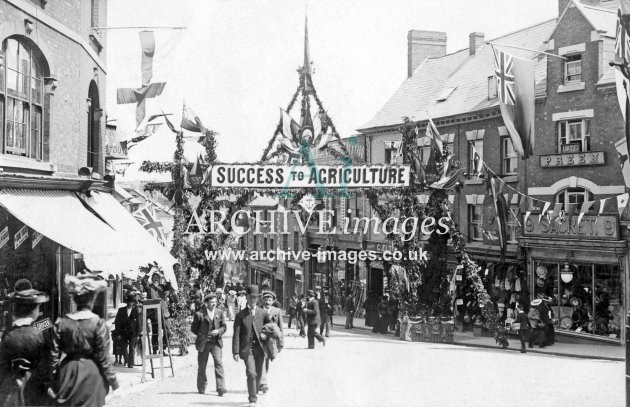 Historic images of the market town of Ross on Wye, including streets, shops, railways, industries and the river