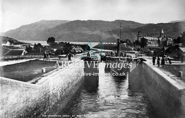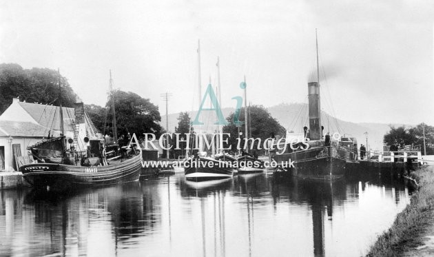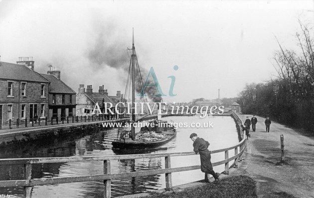 Historic images of Scottish Canals and Navigable Waterways, including Locks, Wharfs, Warehouses, Factories, Bridges, Aqueducts, Narrowboats, Barges, Tugs, Sailing Craft, Horses, and Bargees and Families living on board.