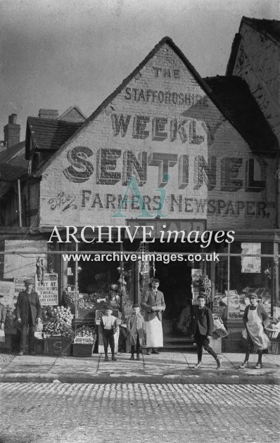 Archive images of Staffordshire cities, towns and villages, showing street scenes, social history views and events, post offices, hotels, pubs and inns, shops, road transport including horse drawn vehicles and carts, and early buses cars and lorries. Also including the Railways, Canals and Industries.