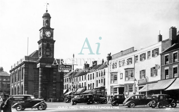 Newcastle under Lyme, Guildhall & motor cars c1950