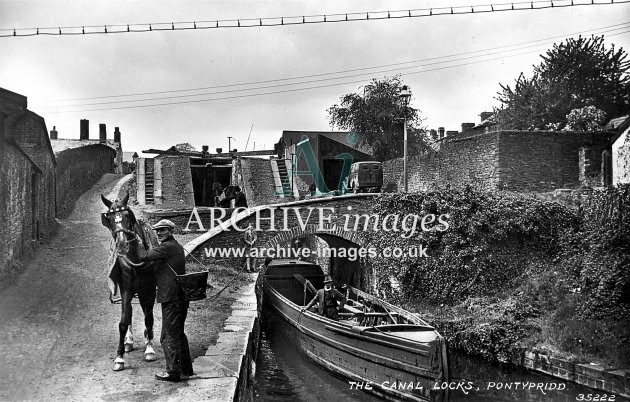 Historic images of Welsh Canals and Navigable Waterways, including Locks, Wharfs, Warehouses, Factories, Bridges, Aqueducts, Narrowboats, Barges, Tugs, Sailing Craft, Horses, and Bargees and Families living on board.